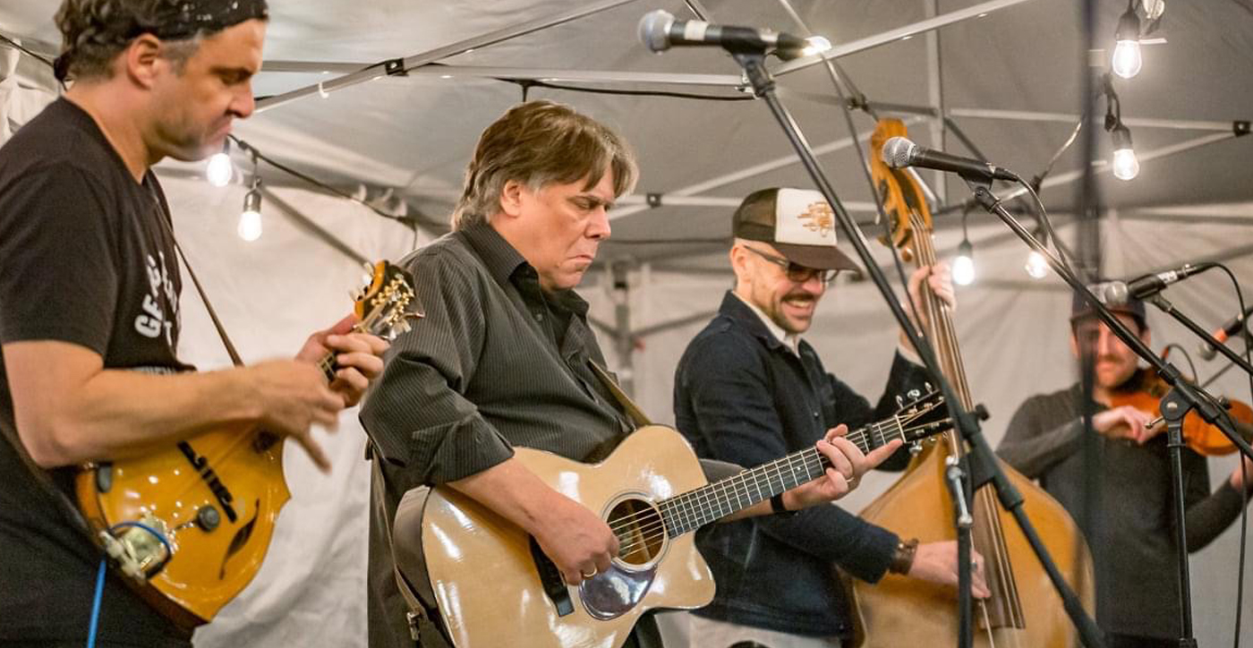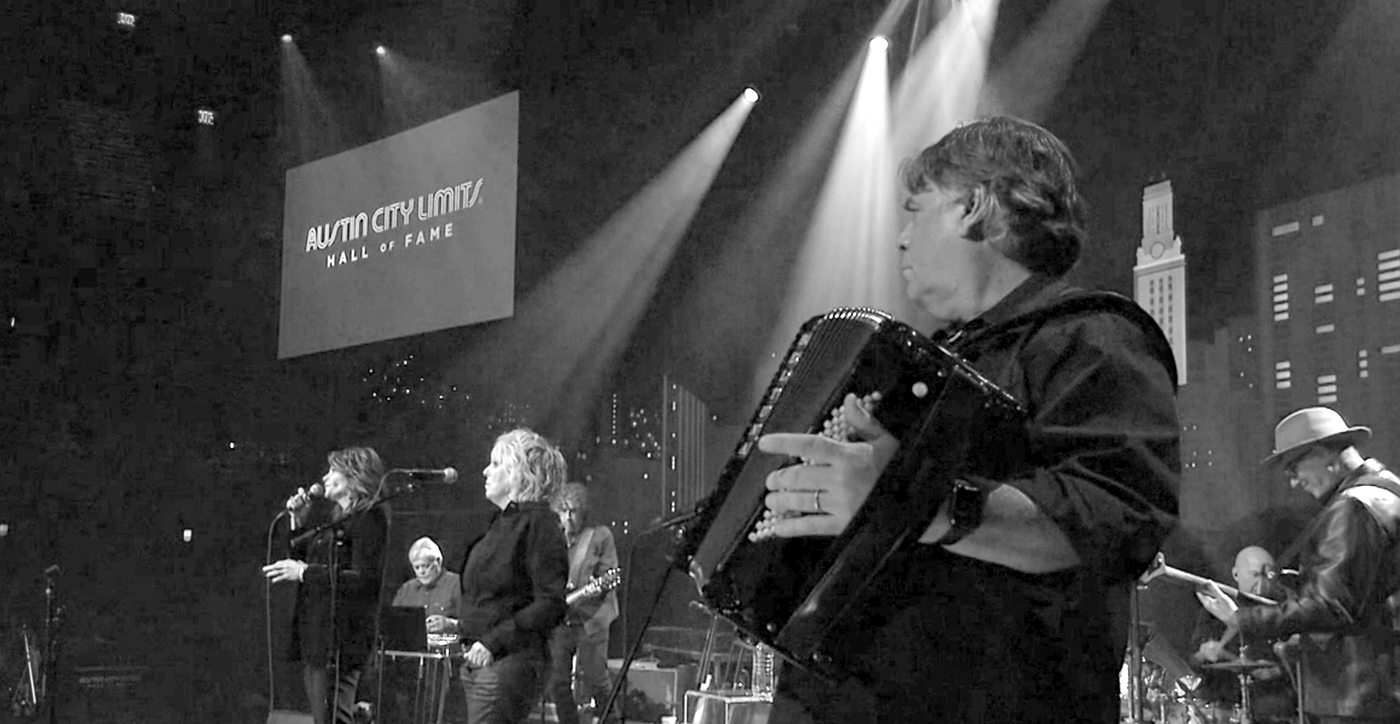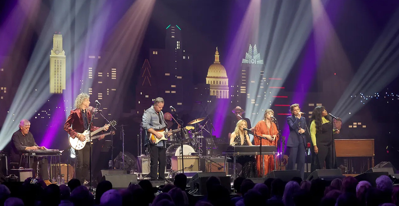 With hosts Megan Mullally and Nick Offerman, Lloyd Maines introduces the ACL Hall of Fame All Stars; David Grissom, Tom Van Schaik, Bill Whitbeck and Chris Gage